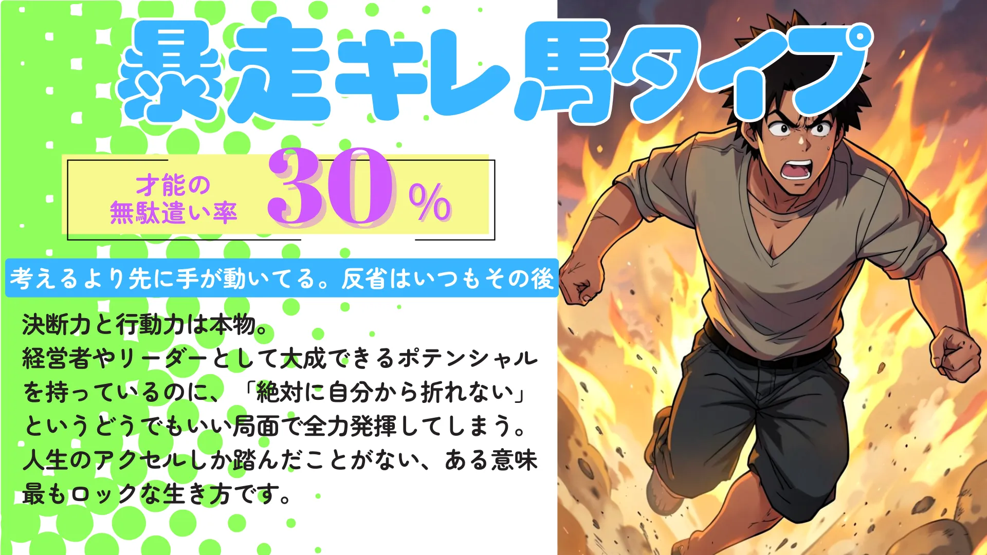 あなたは「暴走キレ馬タイプ(才能の無駄遣い率 30%)」です
