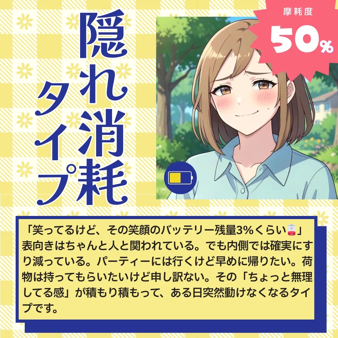 あなたは「隠れ消耗タイプ(摩耗度 50%)」です
