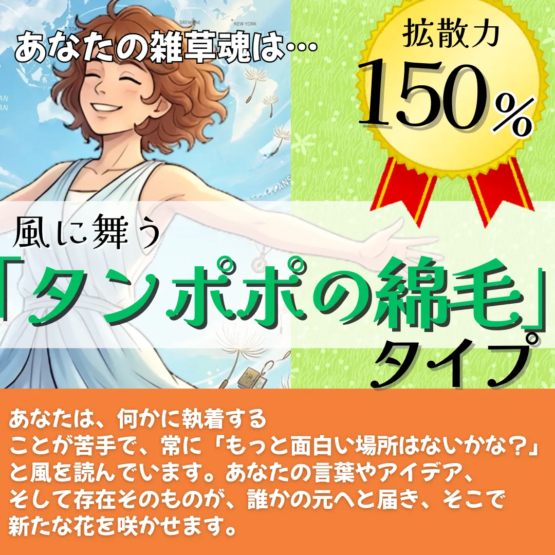 あなたは「回復力120%!踏まれて輝く「オオバコ」タイプ」です