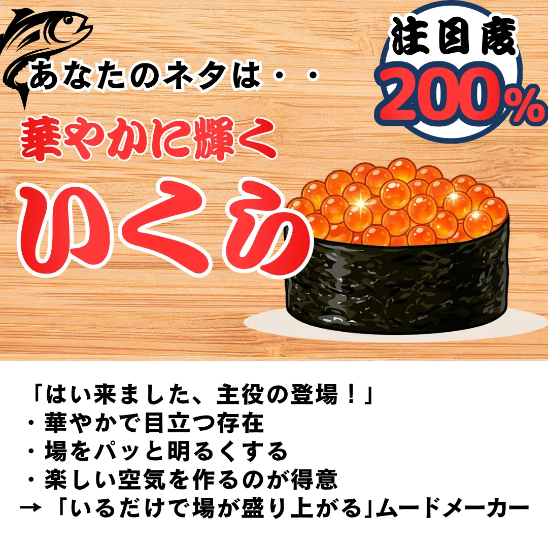 あなたは「華やかに輝くいくらタイプ(注目度 200%)」です